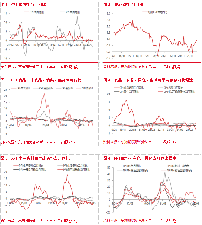 Ø 目前我国逐步进入商品消费旺季,房地产、基建项目施工将有所加快,以及海外需求向好,需求端短期支撑增强,此外,国内相关行业反内卷持续深入,内需型商品价格供需基本面整体有所改善,价格中枢短期有望上移。国外OPEC+增产以及俄乌关系短期有所缓和,原油价格中枢整体下降;海外商品需求整体上升、美元走弱,有色价格整体震荡反弹;海外商品价格中枢整体上移。整体来看,上游国际大宗商品价格总体上移,国内需求逐步改善以及反内卷逐步深入,PPI降幅将逐步收窄期;而且在一揽子增量政策落地显效以及增量政策刺激预期增强等因素带动下,国内工业品需求预期逐步改善,未来随着政策效果的持续显现,价格有望逐步趋稳。CPI环比持平,下阶段,随着国内消费和投资等内需政策刺激进一步增强且逐步落地显效,内需有一定的支撑,市场需求有望扩大,供求关系有望改善,加之上年同期高基数影响逐步消除,CPI有望逐步修复回升。